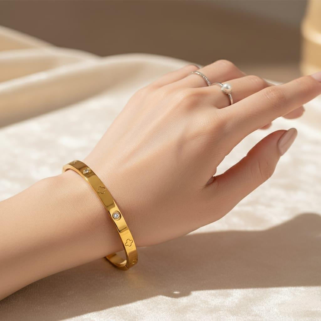 الخامة: سوار كارتير من الستيل و الفولاذ المقاوم للصدأ مطلي بالذهب عيار 18