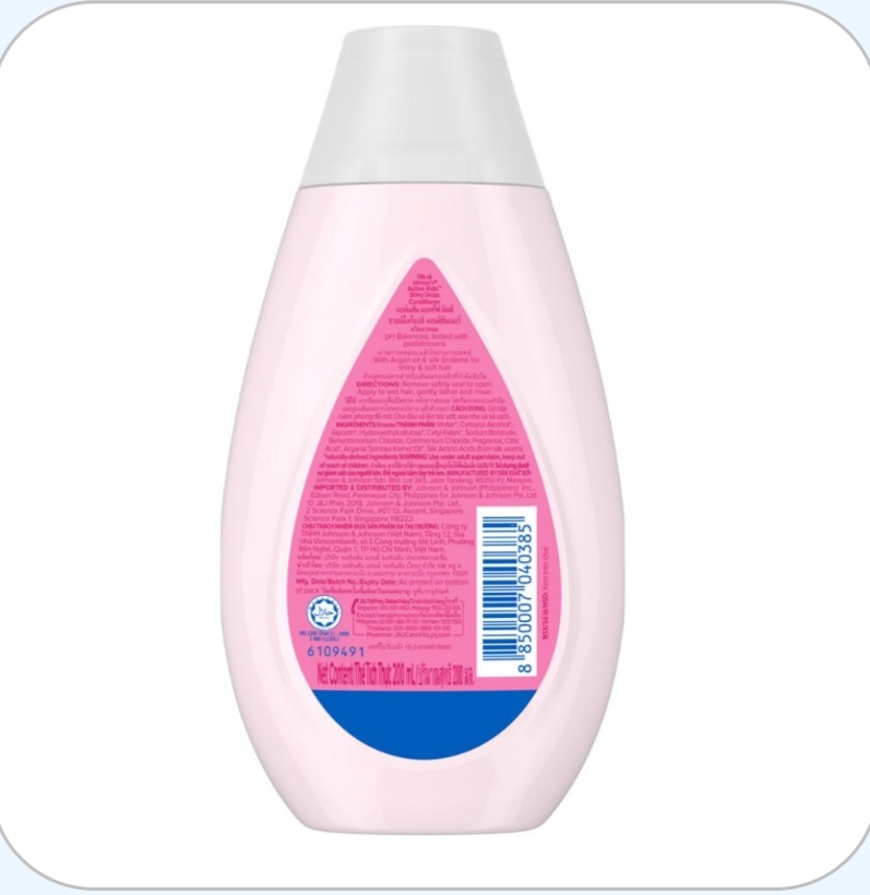 بلسم جونسون أكتيف كيدز™ "القطرات اللامعة" يُعزز اللمعان الطبيعي للشعر بزيت الأرغان وبروتينات الحرير.