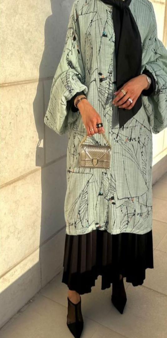أناقة راقية بلمسة فنية! تألقي بجمال الأسلوب الهادئ مع هذا القميص الطويل باللون الأخضر النعناعي الفاتح. يتميز القميص بقماش خفيف وتصميم عصري يزينه نقش فني مجرد من الخطوط السوداء، مما يمنحه مظهرًا فريدًا يجمع بين البساطة والإبداع. تمنحك قصته الواسعة وأكمامه الفضفاضة حركة مريحة، وهو مثالي للارتداء فوق ملابس سادة باللون الأسود، ليبرز جمال لونه ونقوشه. هذه القطعة هي خيارك الأنيق لإطلالة مميزة ومريحة في كل الأوقات.