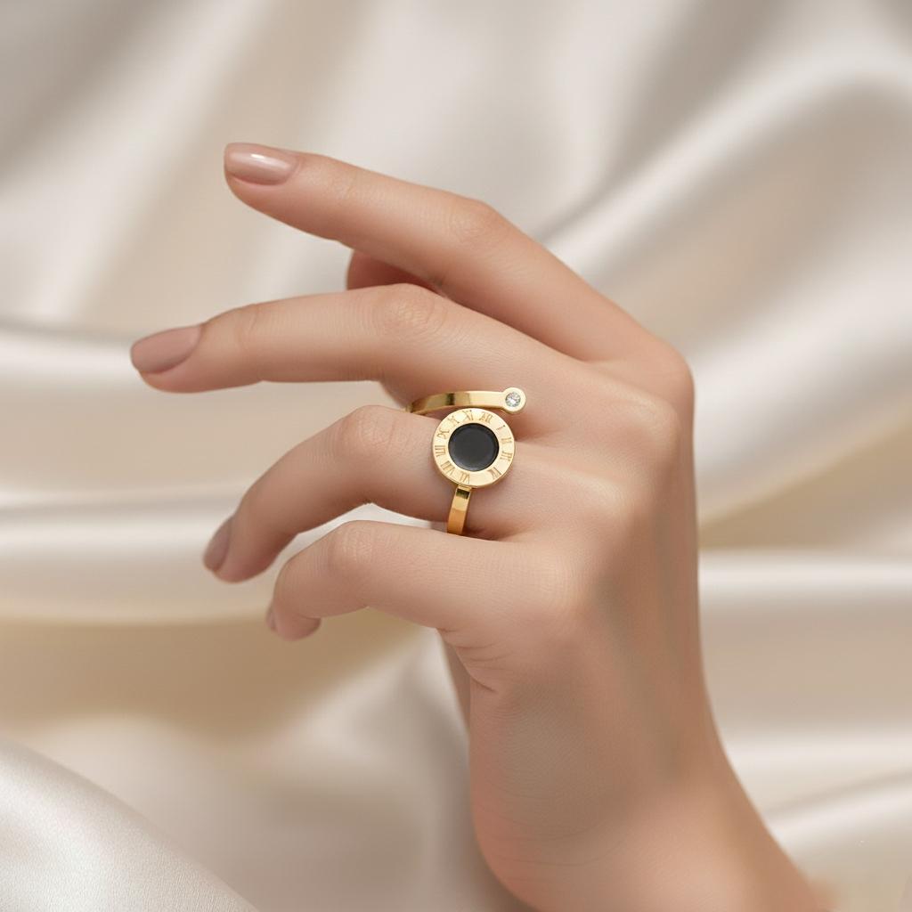 الخامة: خاتم💍 من الزركون و الاكريليك والفولاذ المقاوم للصدأ مطلي بالذهب عيار 18
