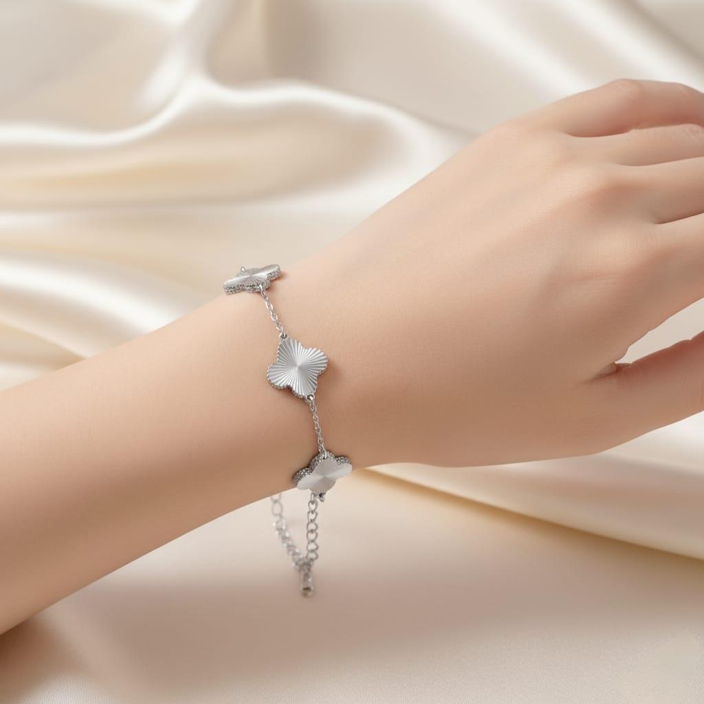 الخامة: سوار فان كليف من الستيل و الفولاذ المقاوم للصدأ مطلي بالذهب الأبيض عيار 18