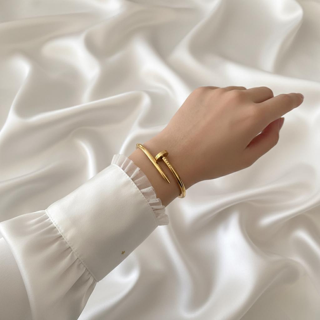 الخامة: سوار مسمار من الستيل  و الفولاذ المقاوم للصدأ مطلي بالذهب  عيار 18