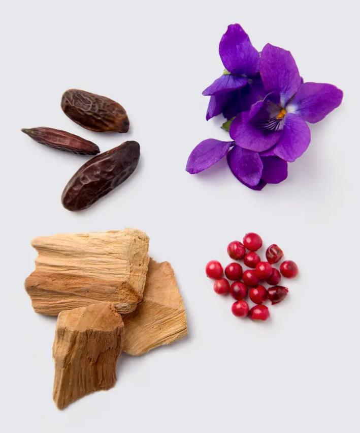 افتتاحية منعشة وأنيقة بلمسة عصرية من الأوزون - فلفل وردي منعش وتفاح أخضر مقرمش. يحمل قلب العطر الدافئ واللطيف نفحات بنفسجية ناعمة وناعمة تتباين مع دفء الأمبروكسان الحريري. أما القاعدة، فتكشف عن رائحة نقية من خشب الأرز المزروع طبيعيًا، ممزوجة بفول التونكا الناعم والمسك الناعم كالكشمير. المكونات الرئيسية، خشب الأرز وحبوب الفلفل المقطوفة يدويًا، كلاهما من مصادر مستدامة.