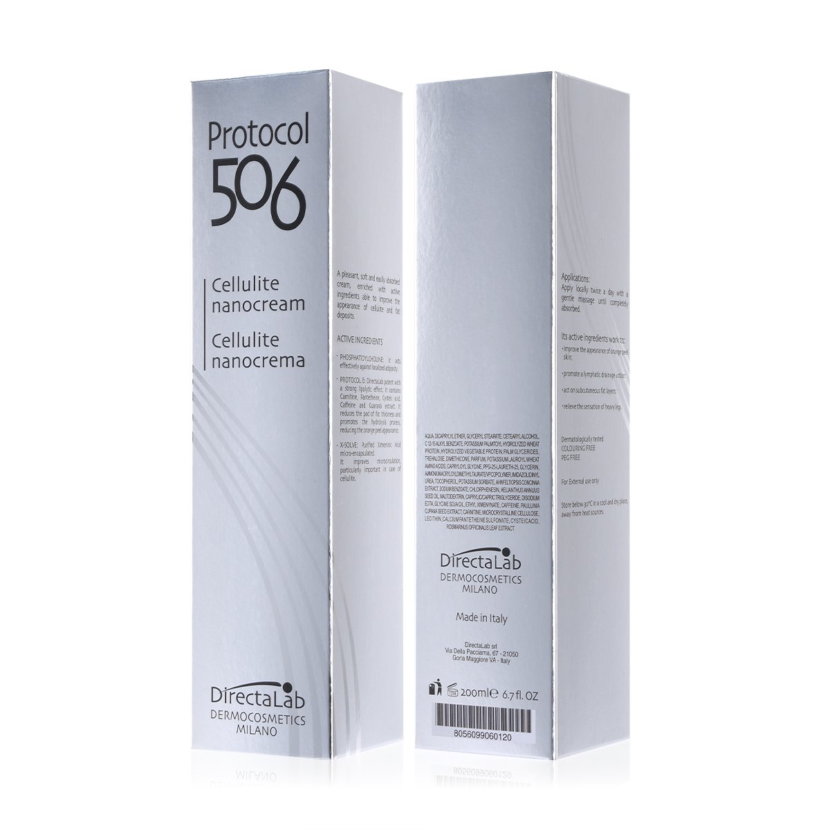 Protocol 506 Cellulite nanocream visibly improves the appearance of “orange peel skin” and confers tone and firmness to tissues for a smooth and elastic skin.