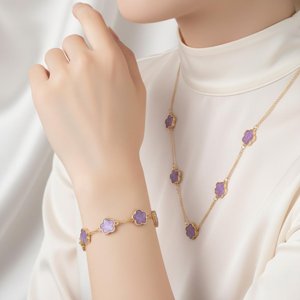 Material: Van Cleef & Arpels necklace and bracelet set in 18k gold-plated titanium stainless steel